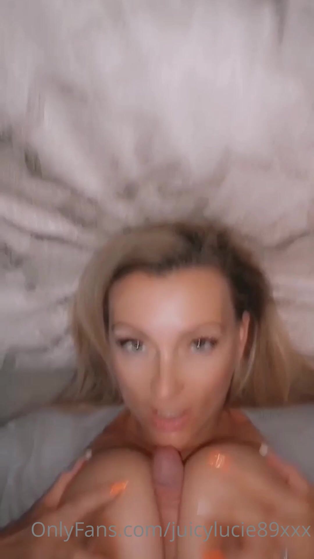 Miss Juicy Lucy Teasing a Cock With Her Massive Boobs While Laying on bed Onlyfans Video