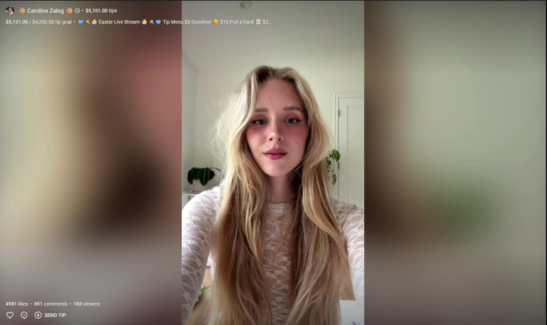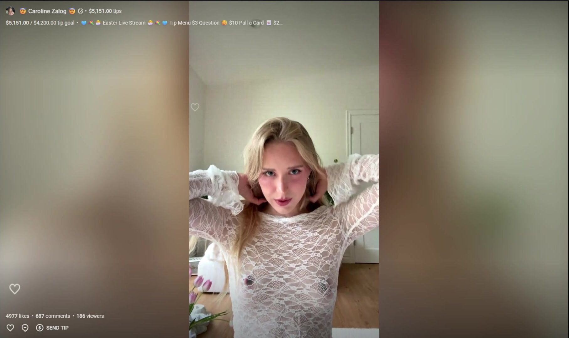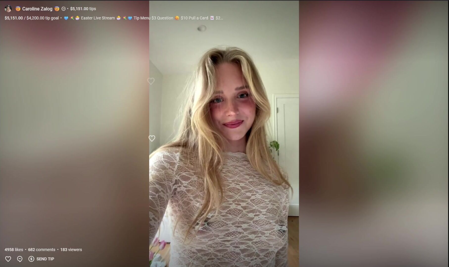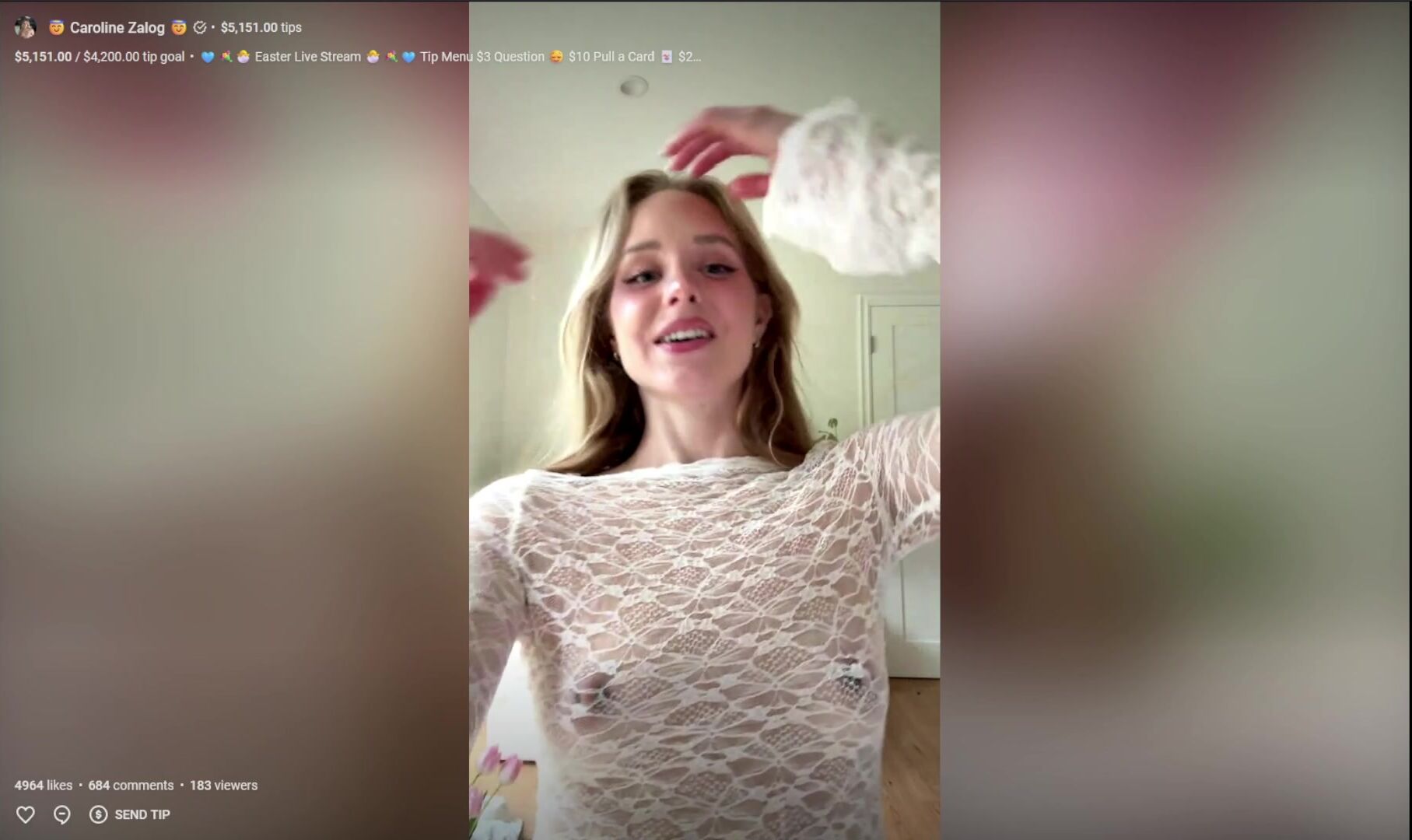 Caroline Zalog Teases In A Lace Dress During A Sensual Live Stream Video