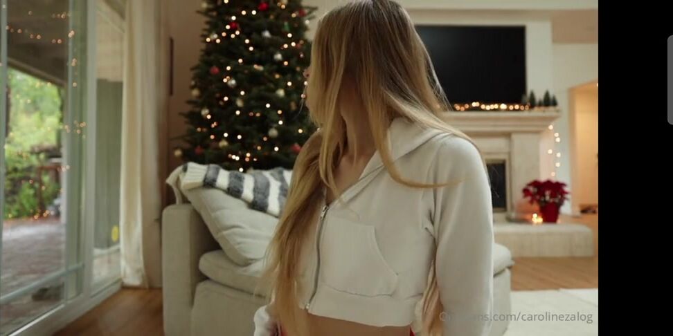 Blonde babe Caroline Zalog strips down to her red thong and socks in this festive Christmas-themed video. Watch as she teases with her fit body and playful holiday vibes.