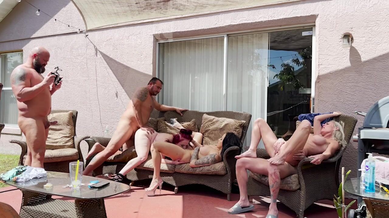 Outdoor orgy turns wild in this backyard fuck fest video with Babyanne_lsfl sucking dick and getting pounded naked under the sun