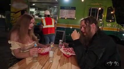 Monica Sierra serves up tacos and a stiff cock in this public sex video, teasing her man's meat while dishing out delicious bites.
